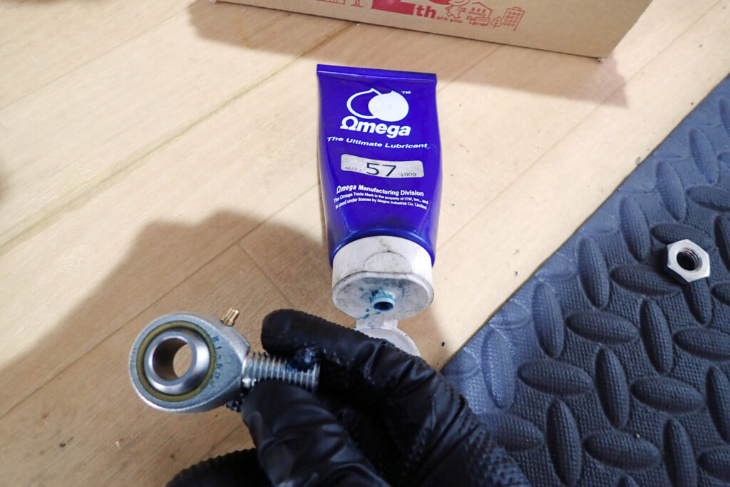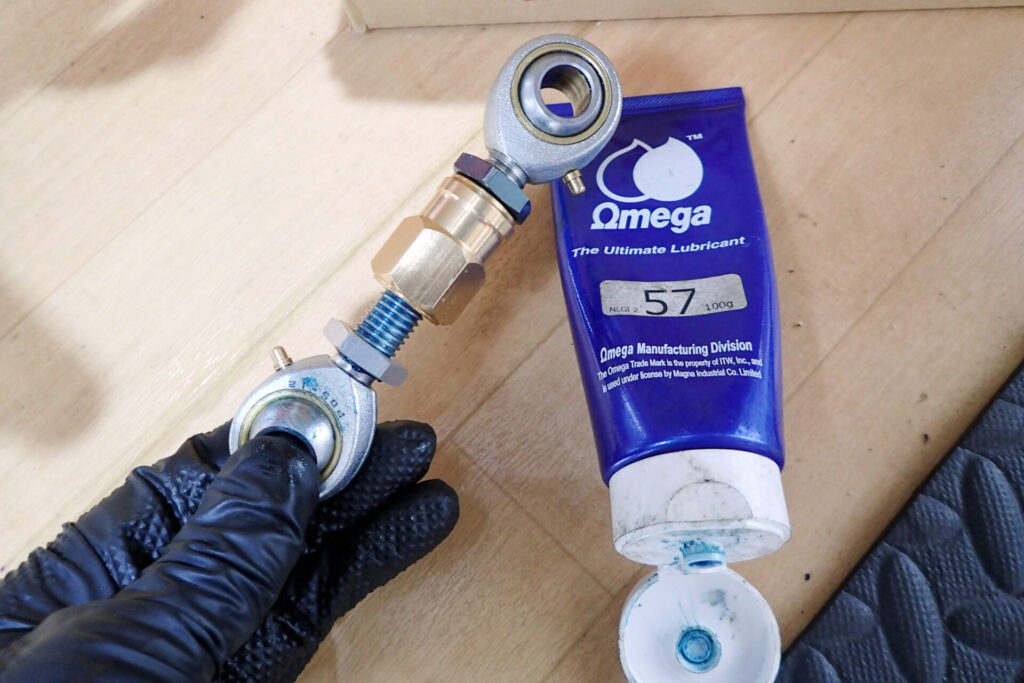ちなみに,グリスニップルからグリスを注入したら,きちんとボール全体にグリスが行き渡るのか?と思い,ピロボールをずらして内部を除いてみました.