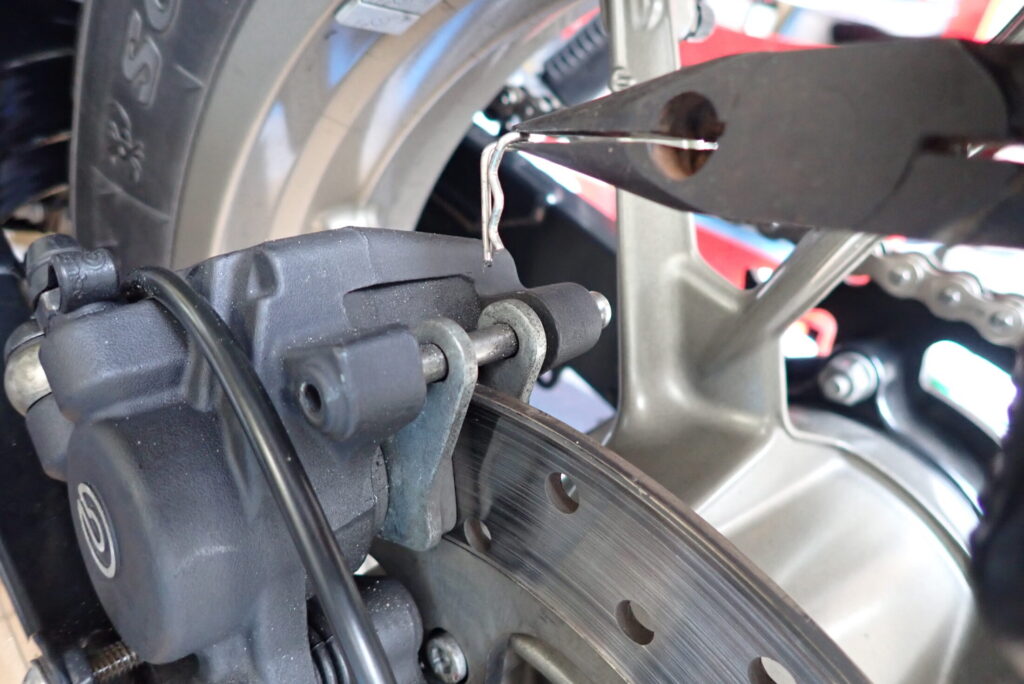 ブレーキパッドピンを外したら、ブレーキパッドを外します。