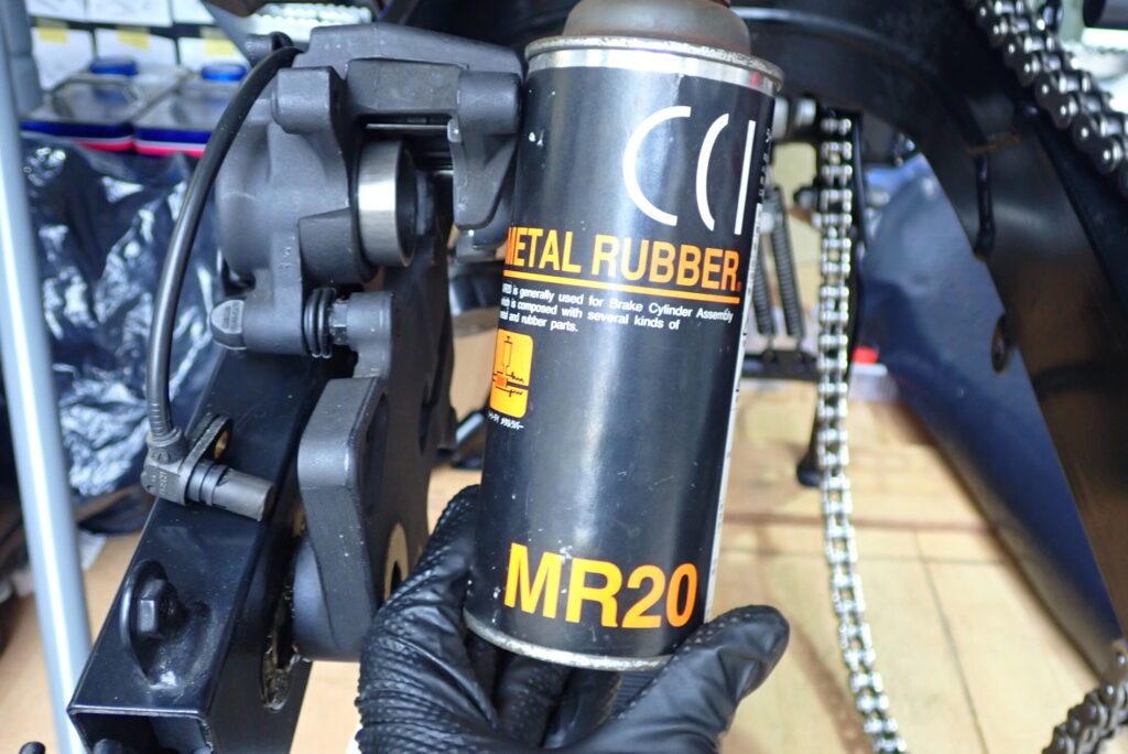 洗浄後のピストンには、潤滑のために専用のケミカルを塗布します。ここで重要なのが「ゴムを侵さない」ケミカルを選ぶことです。一般的にはシリコングリスを使用しますが、より浸透性が高く、作業性が良い「CCIメタルラバー」などのラバー用潤滑剤もプロの現場で多用されています。