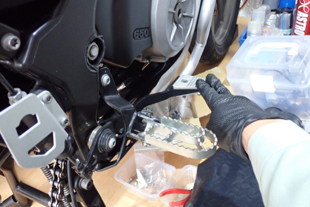 この時、リアホイールのスポークがパッドピンに当たることがあるので、あらかじめホールの位置を調整しておくとよいです。