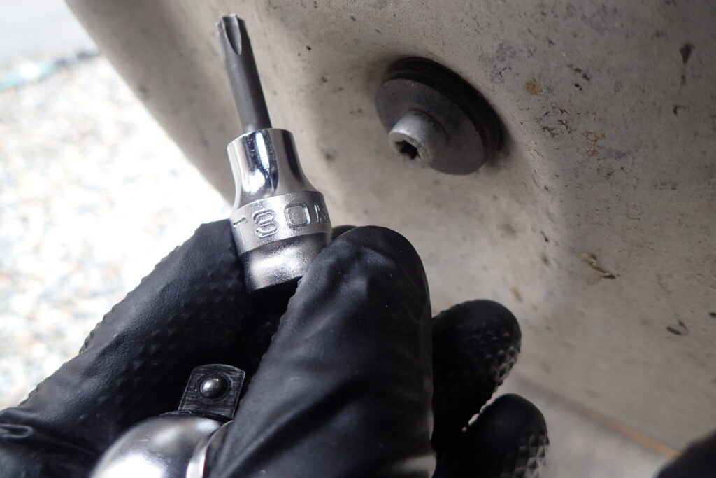 ラチェットを利用して,アンダーガードを固定しているトルクスを外していきます.