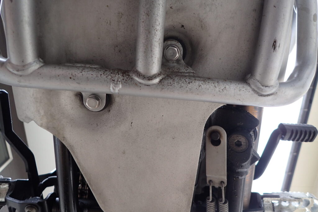 さて,ここまで作業したら,先程のエンジンガードの「凹」の部分を固定するボルトの頭の出っ張りを少なくするためを少し締めておきます.