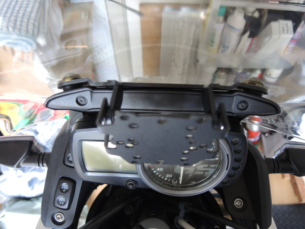 ちょっと分かりにくいかもしれませんが,車体とスクリーンの間にナビステーを挟んでからスクリーンを固定します.