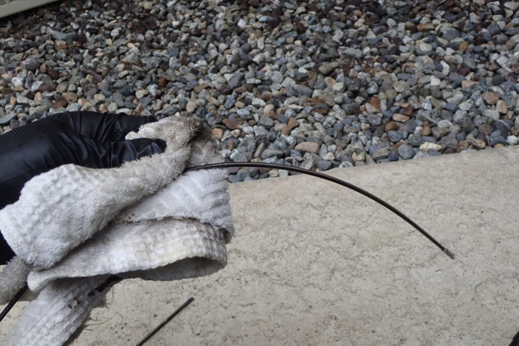 スピードメーターケーブルのそれぞれの端部の接続が終わったら,ケーブルの固定をします.