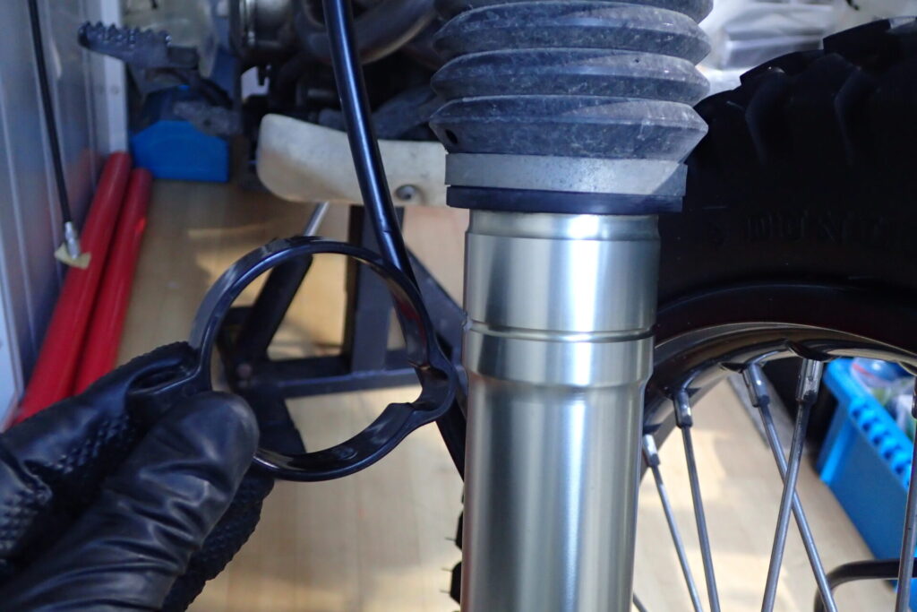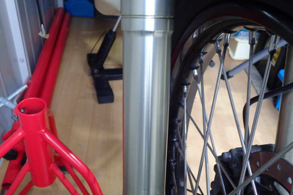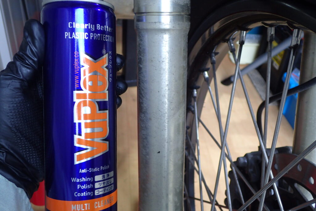 オイルが行き渡るまでの間,汚れたフロントフォークを清掃します.