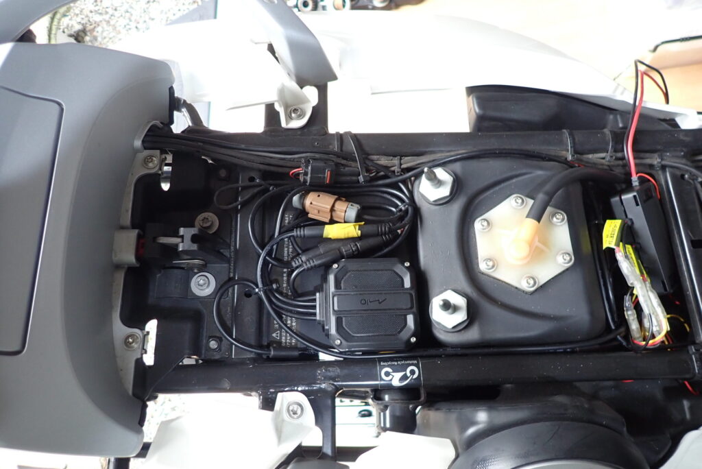 写真中央に見える配線の束は,殆どが後付した電装系のものです.