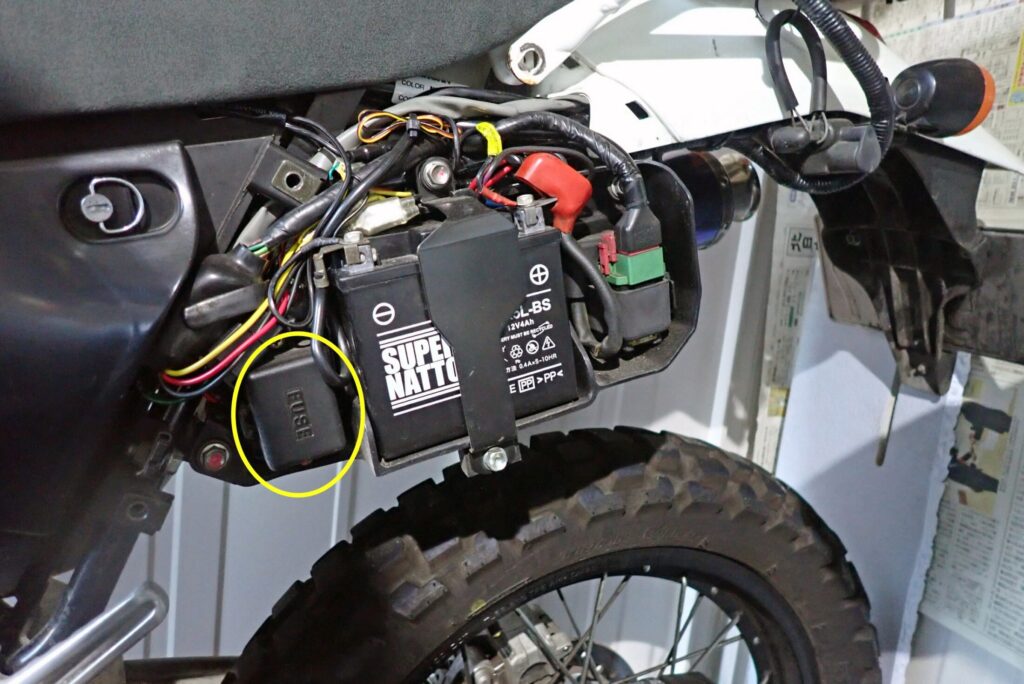 ヒューズボックスは,シート下やサイドカウルの中など比較的メンテナンスしやすい場所で,バッテリーの近くにあることが多いです.