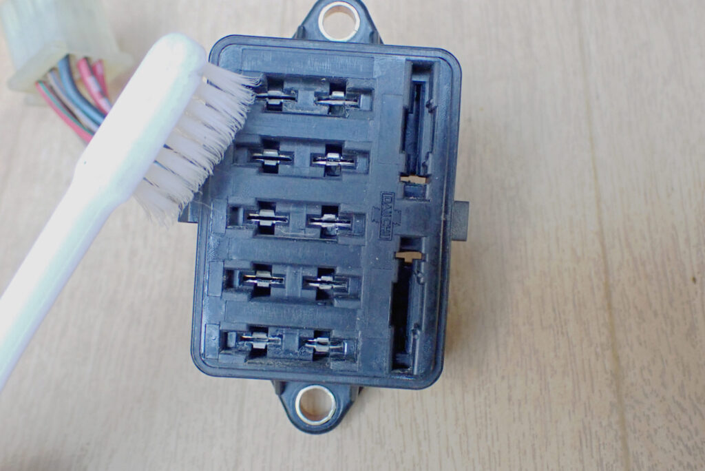 ヒューズはすべて清掃し,接点復活剤を塗布したので,今度はヒューズボックス側を清掃します.