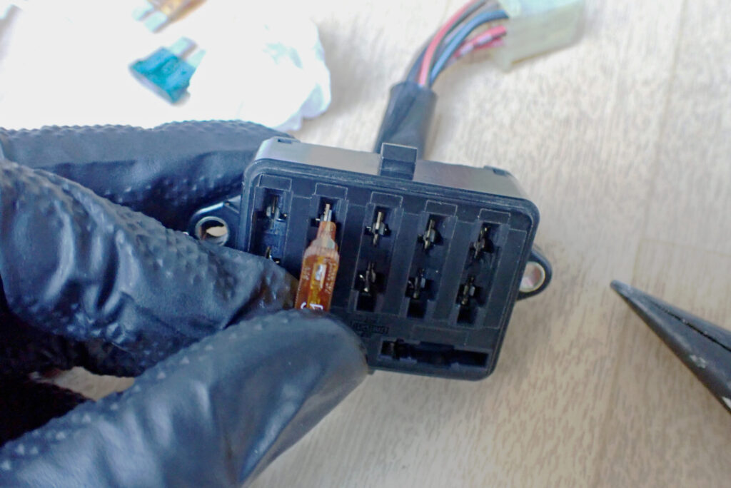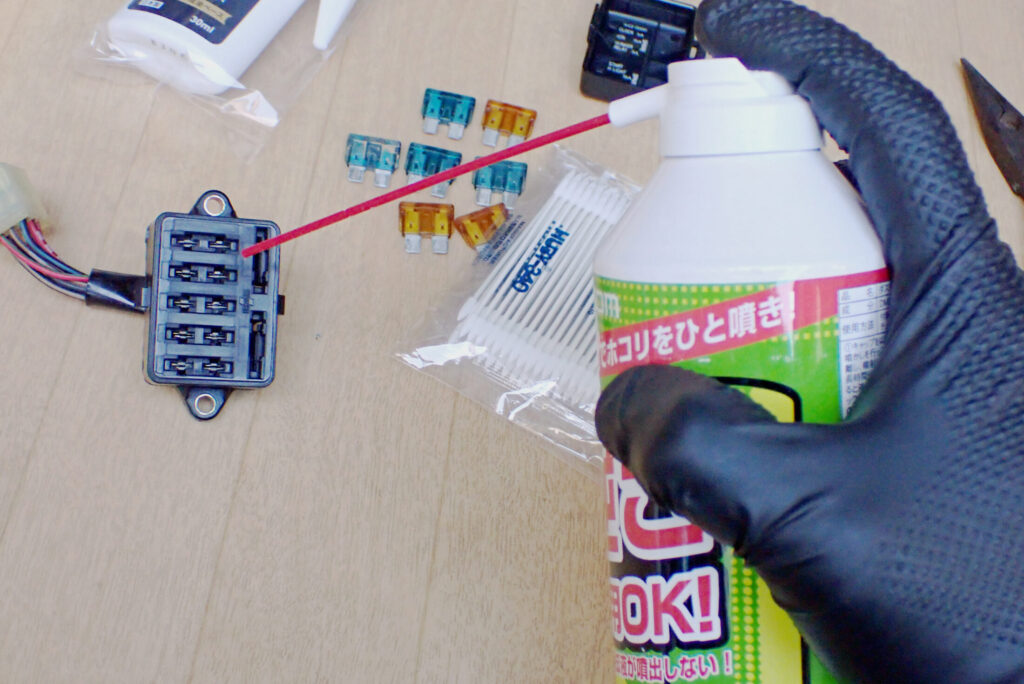 ヒューズを抜き差しすることで,受け側の端子にも接点復活剤が着くようにしました.