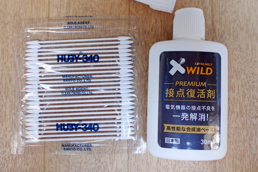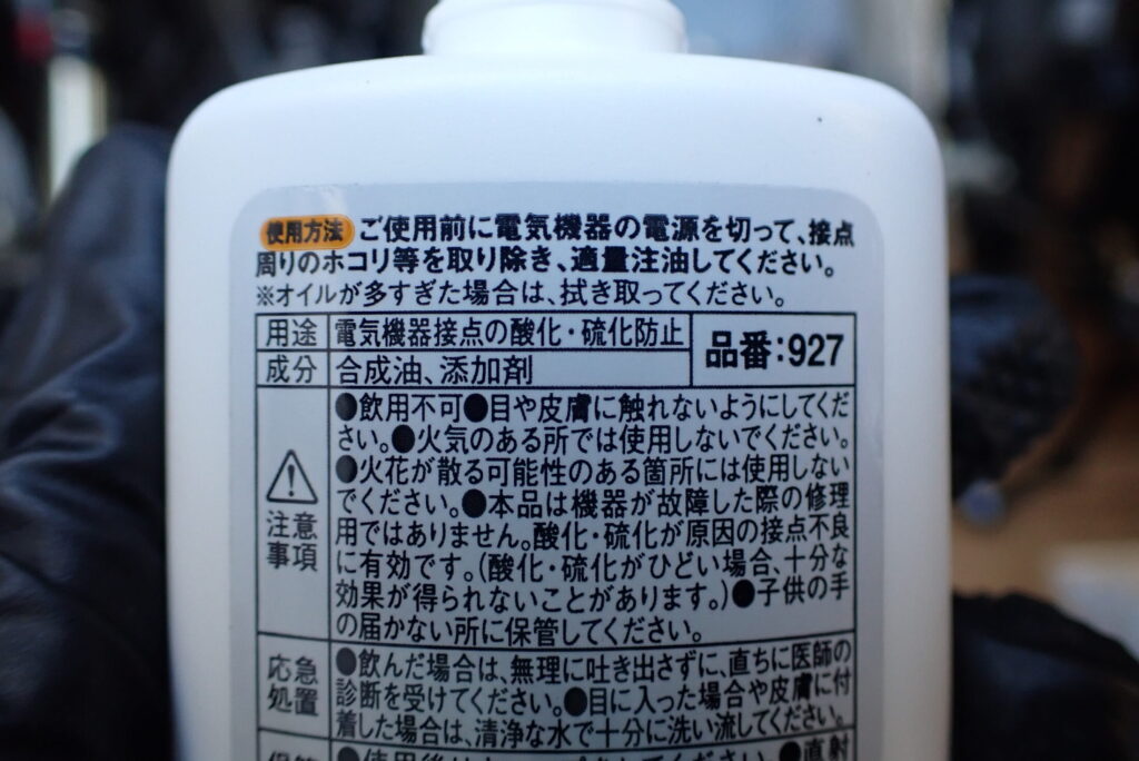 容器裏の説明分によると,接点部に適量注油すれば良いみたいですが,オイルがどこに流れていくか分かりませんので,接点に綿棒で塗布することにしました.