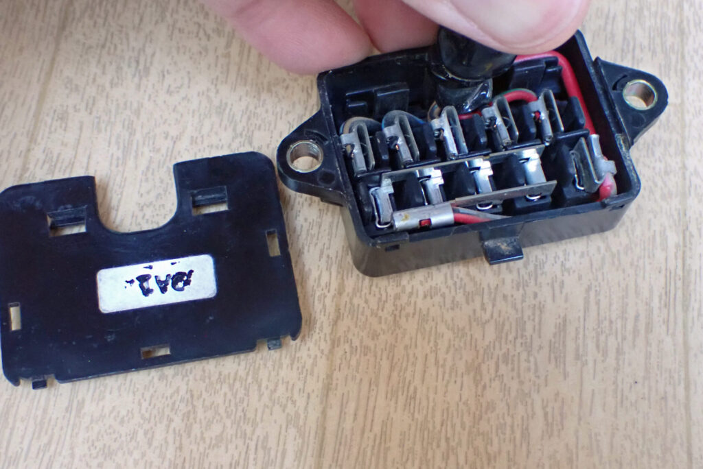 なんとか端子の受け側も清掃したくて,ヒューズボックスを分解してみました.