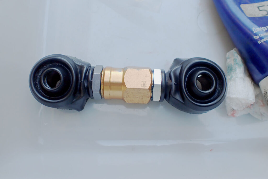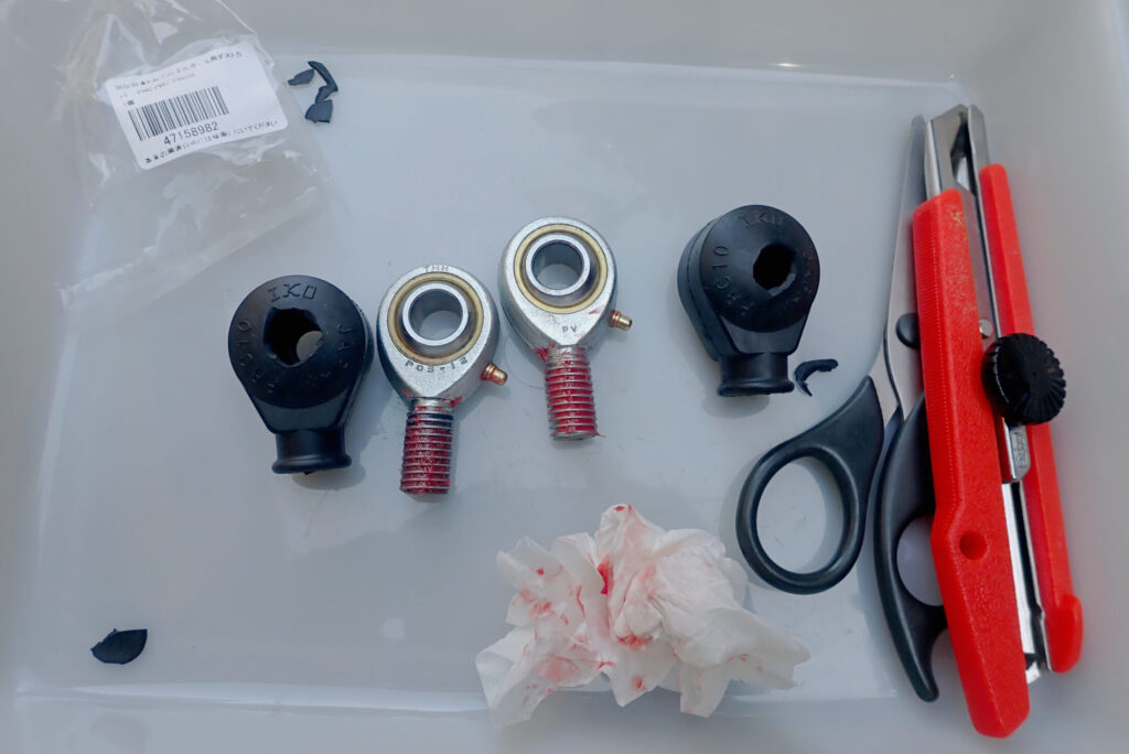 さて、ピロボール部分はグリスニップルを利用してグリスアップできたので、現状での問題点解決のための細工をします。